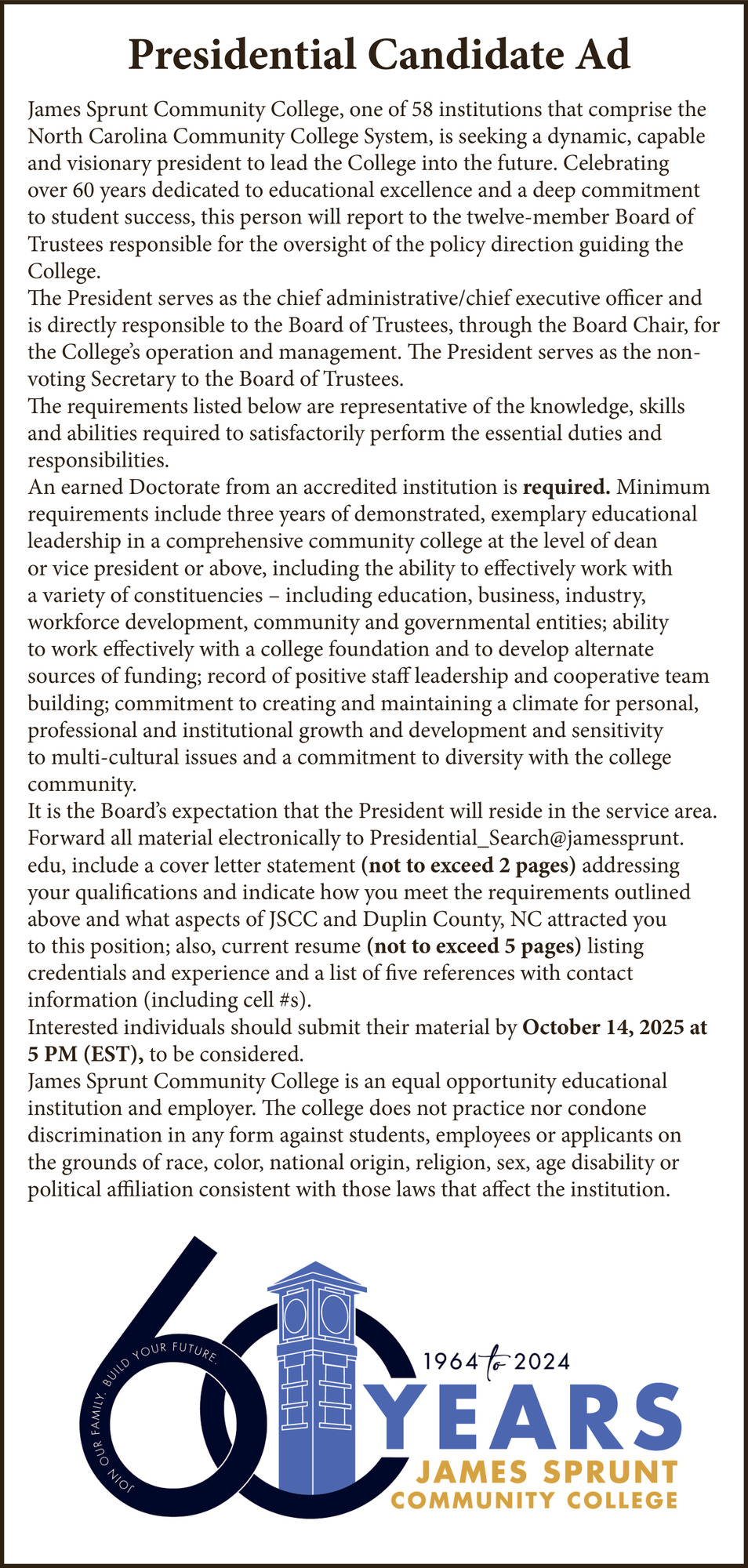 Oct 02, 2025. James Sprunt Community College Organizations Ads from Duplin Times