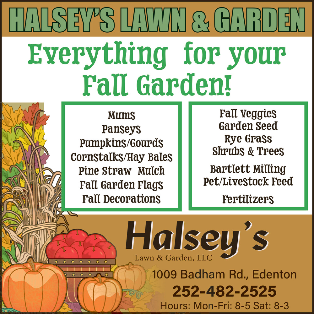 252-482-25251009 Badham RdEdenton, NC 27932(Garden Center)