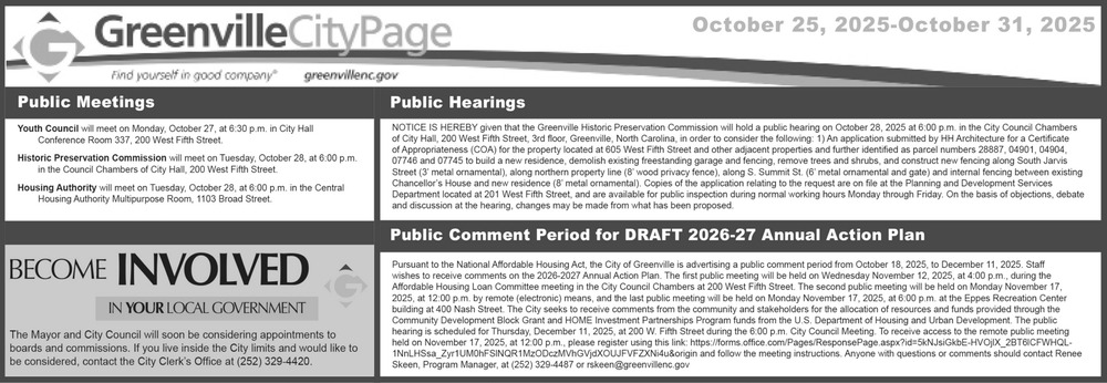 Oct 25, 2025. City of Greenville Public Notice Ads from The Daily Reflector