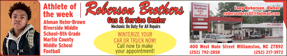 Ads for Roberson Brothers Gas & Service Center in Williamston, NC