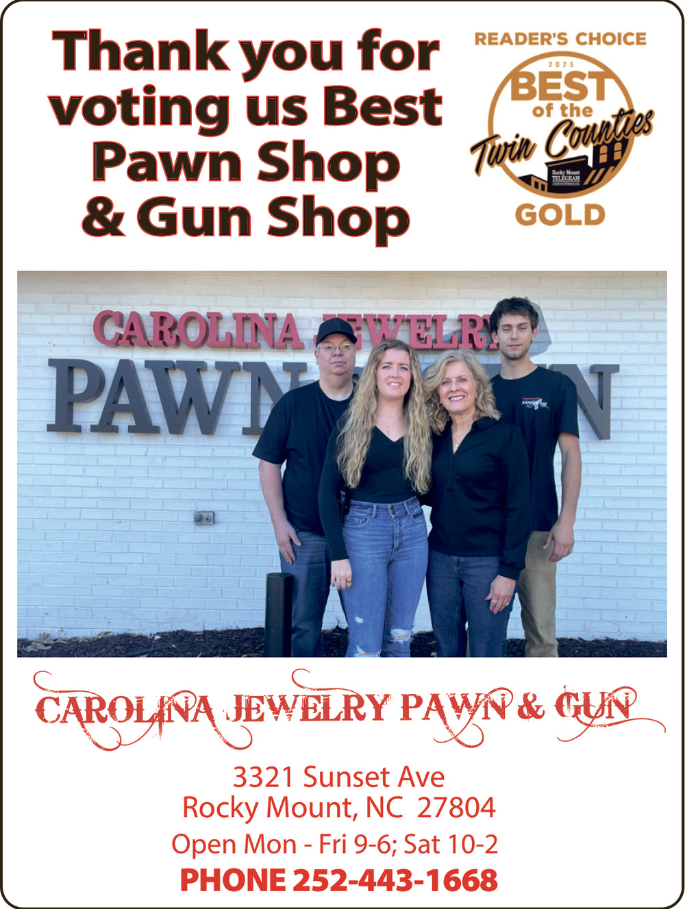 Nov 29, 2025. Carolina Jewelry Pawn & Gun Jewelry Ads from Rocky Mount Telegram