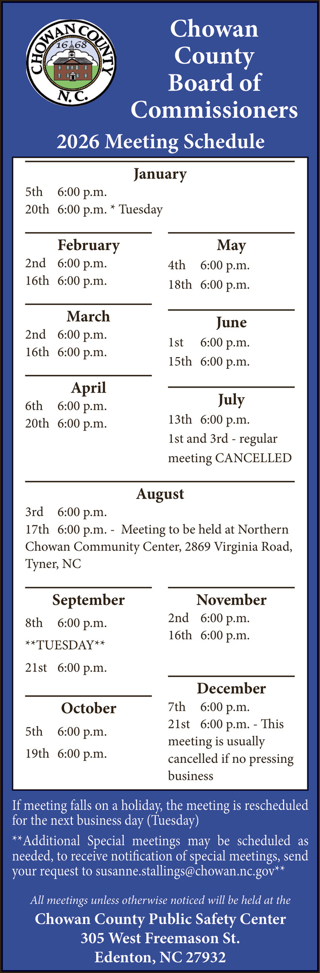 2026 Meeting Schedule