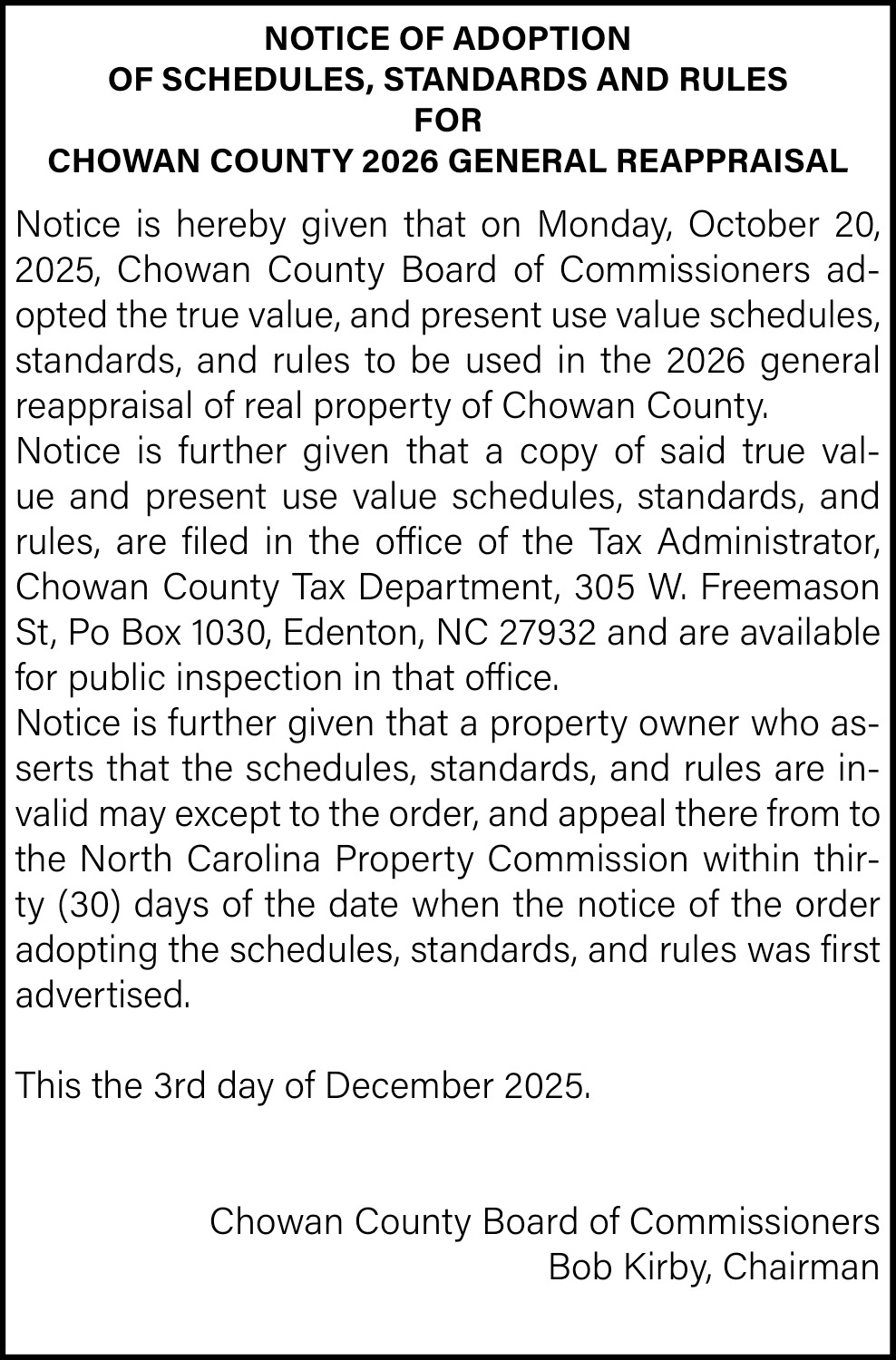 Dec 12, 2025. Chowan County Public Notice Ads from Chowan Herald
