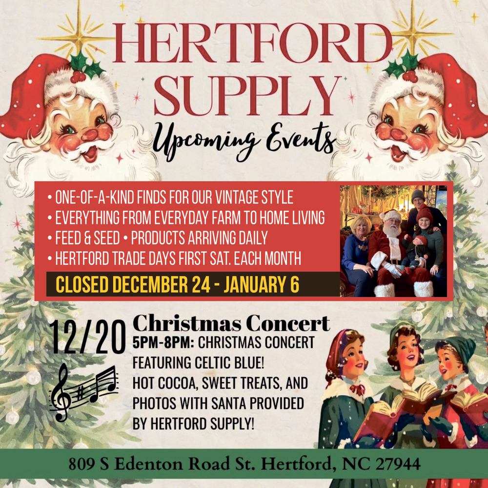Dec 19, 2025. Hertford Supply Upcoming Events Events Ads from Chowan Herald