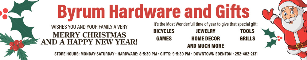 Dec 20, 2025. Byrum Hardware Co. Gift Shop & Craft Shop Hardware Ads from Chowan Herald