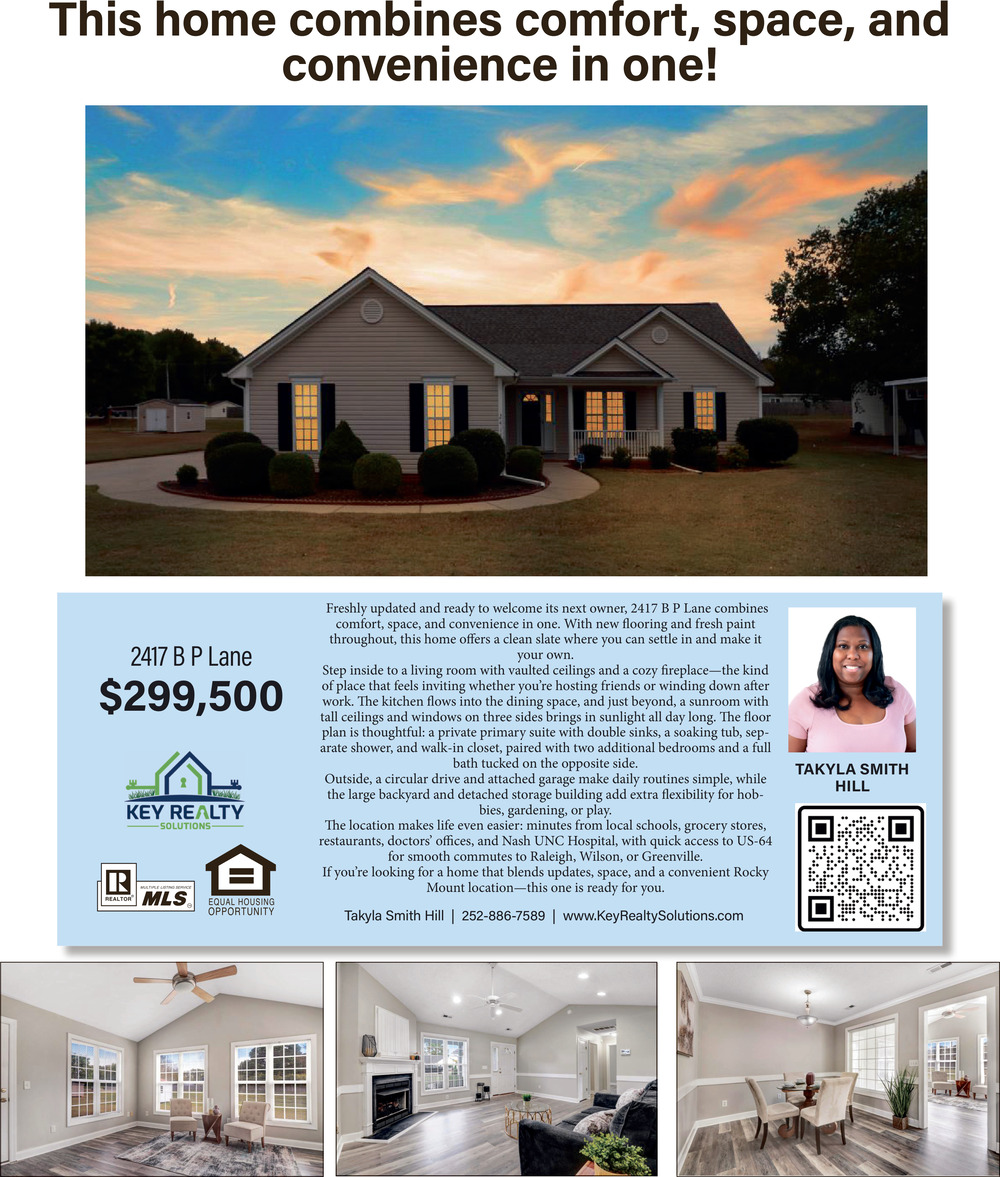 Dec 20, 2025. Takyla Smith Hill - Key Realty Solutions Real Estate Ads from Rocky Mount Telegram