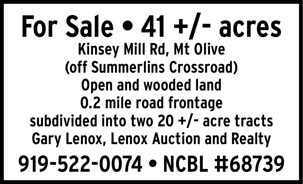 Jan 08, 2026. Lenox Auction & Realty Real Estate Ads from Duplin Times