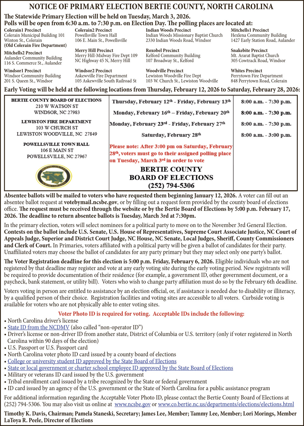Jan 17, 2026. Bertie County Public Notice Ads from Bertie Ledger-Advance
