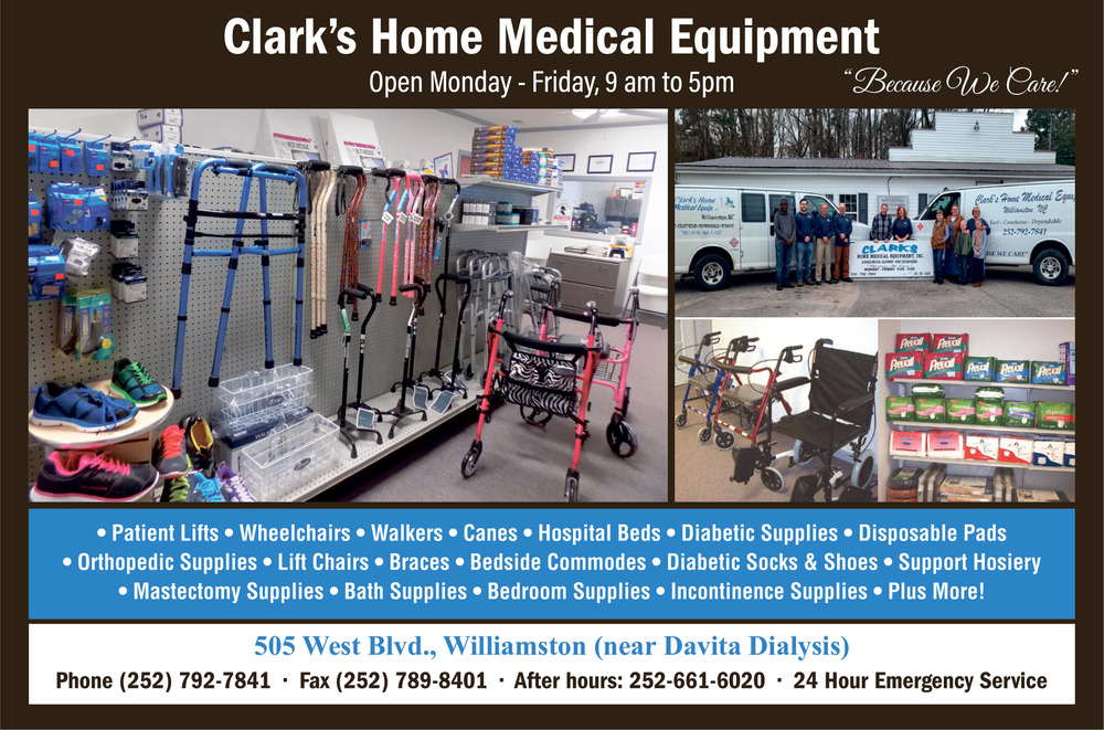 Ads for Clark's Home Medical Equipment in Williamston, NC