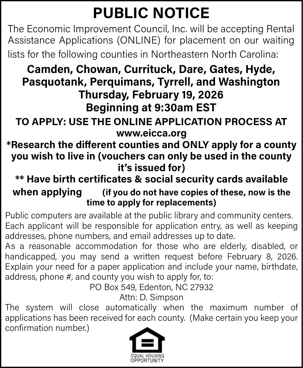 Jan 31, 2026. The Economic Improvement Council, Inc Public Notice Ads from The Daily Advance