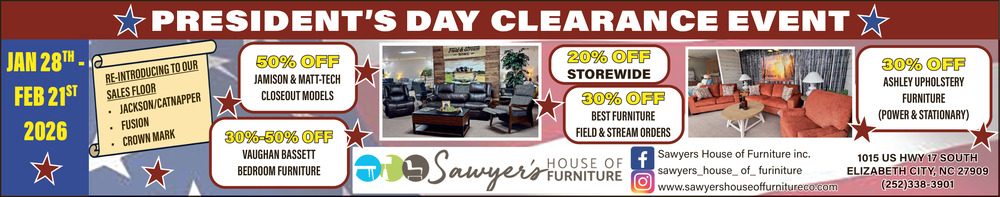 Ads for Sawyers House of Furniture in Elizabeth City, NC