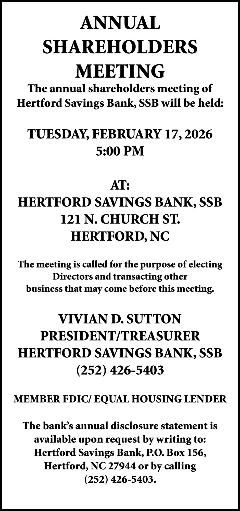 Feb 07, 2026. Hertford Savings Bank, SSB Events Ads from The Perquimans Weekly
