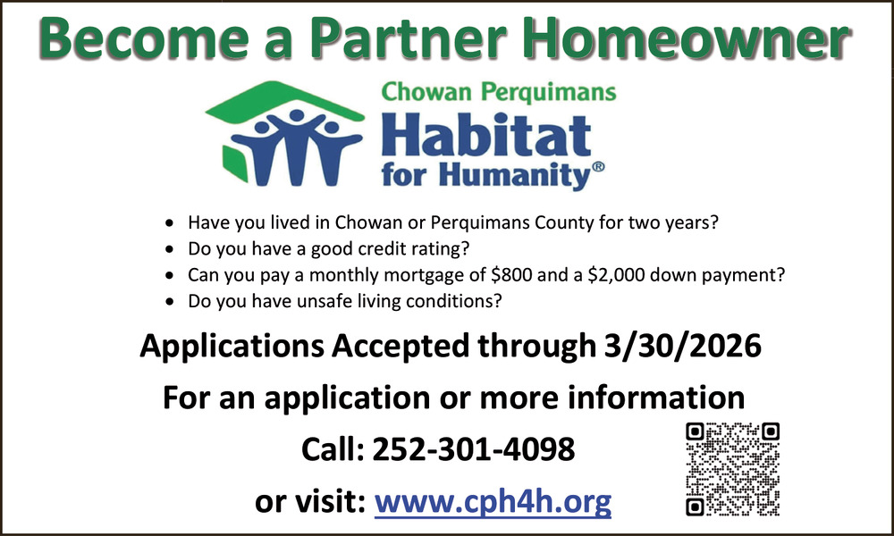 Feb 07, 2026. Chowan Perquimans Habitat for Humanity ReStore Thrift Shops Ads from Chowan Herald