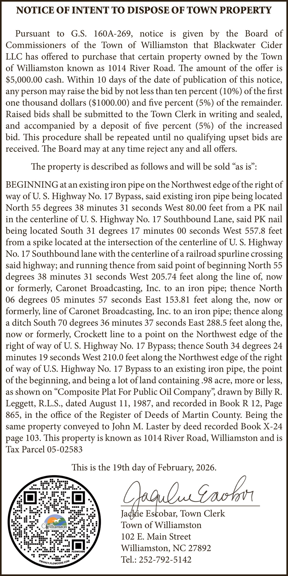 • Public Notice in Williamston, NC