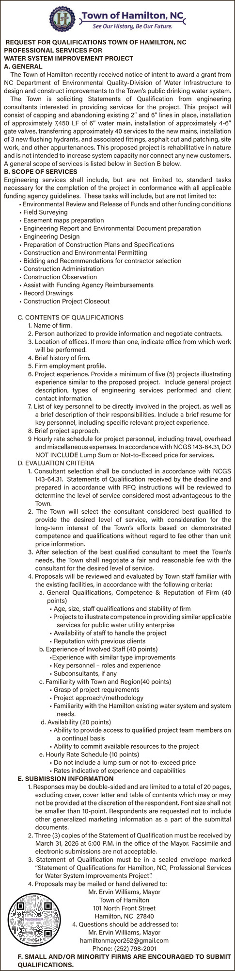 Feb 19, 2026. Town of Hamilton Public Notice Ads from The Enterprise