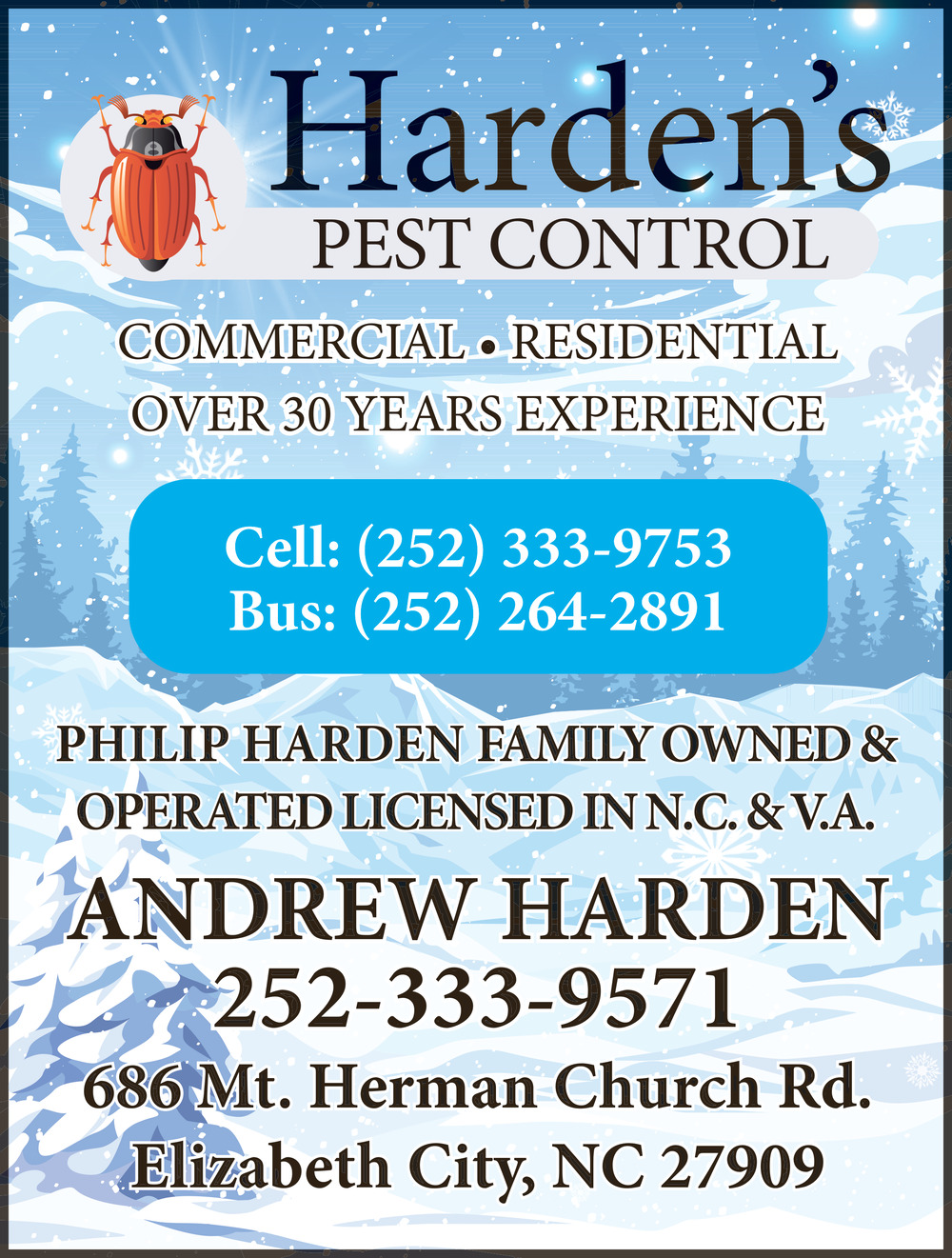Ads for Harden's Pest Control in Elizabeth City, NC