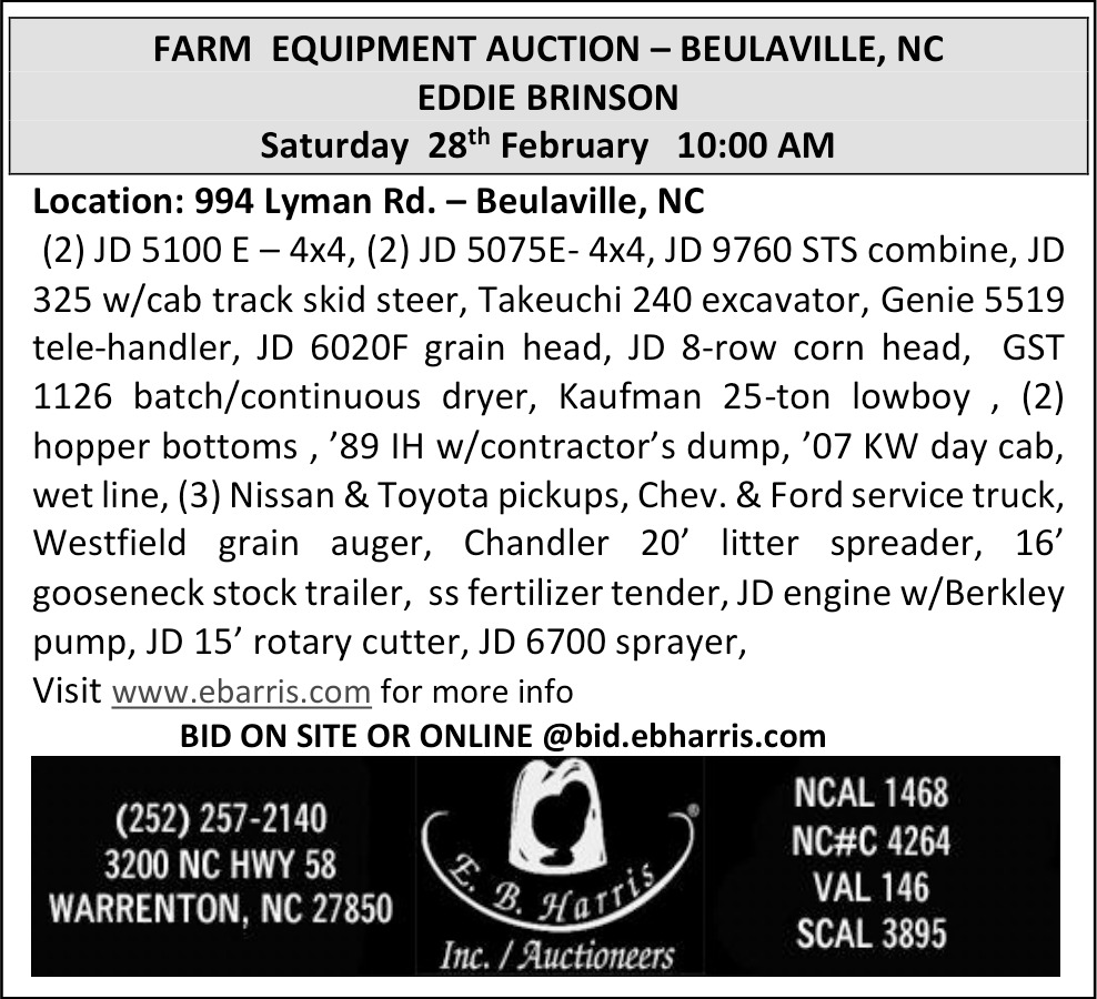 Feb 26, 2026. E. B. Harris, Inc Farm Equipment Ads from Duplin Times