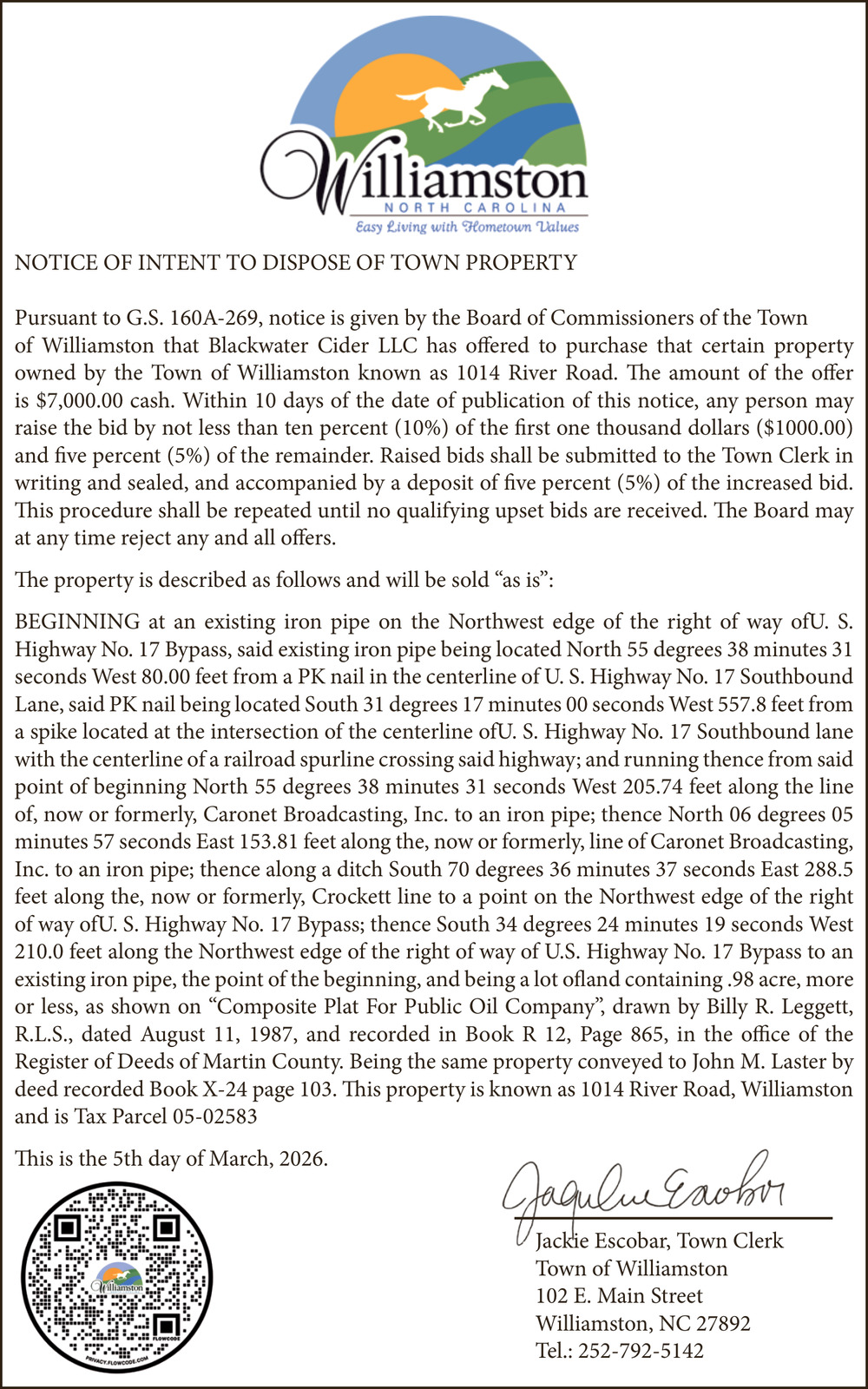 • Public Notice in Williamston, NC