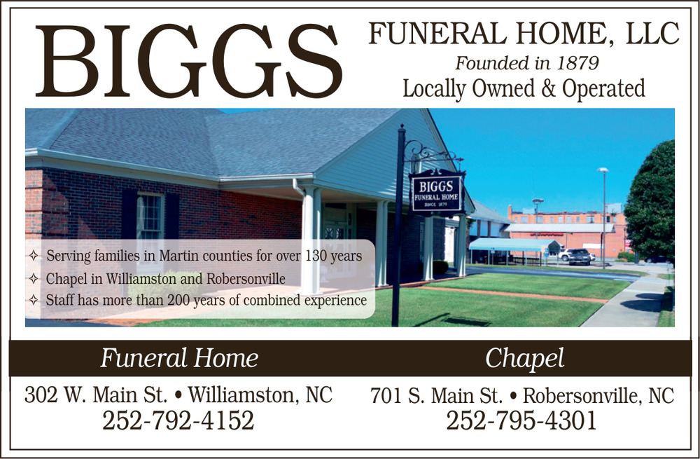Ads for Biggs Funeral Home, LLC in Williamston, NC
