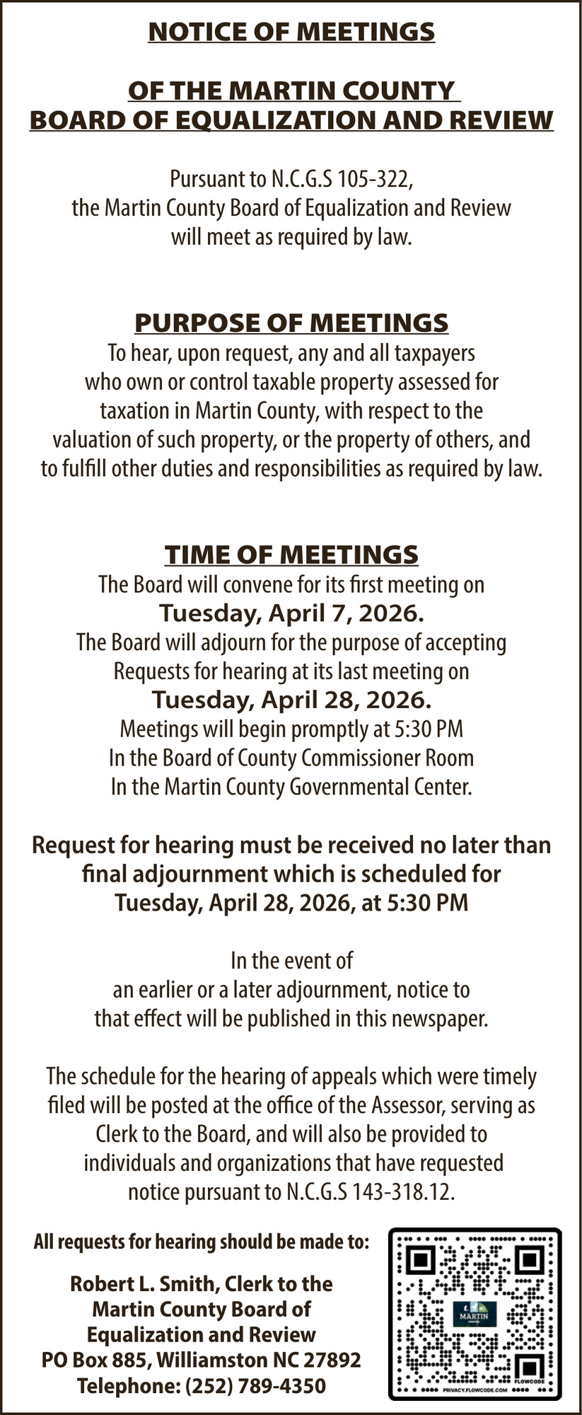 • Public Notices in Williamston, NC