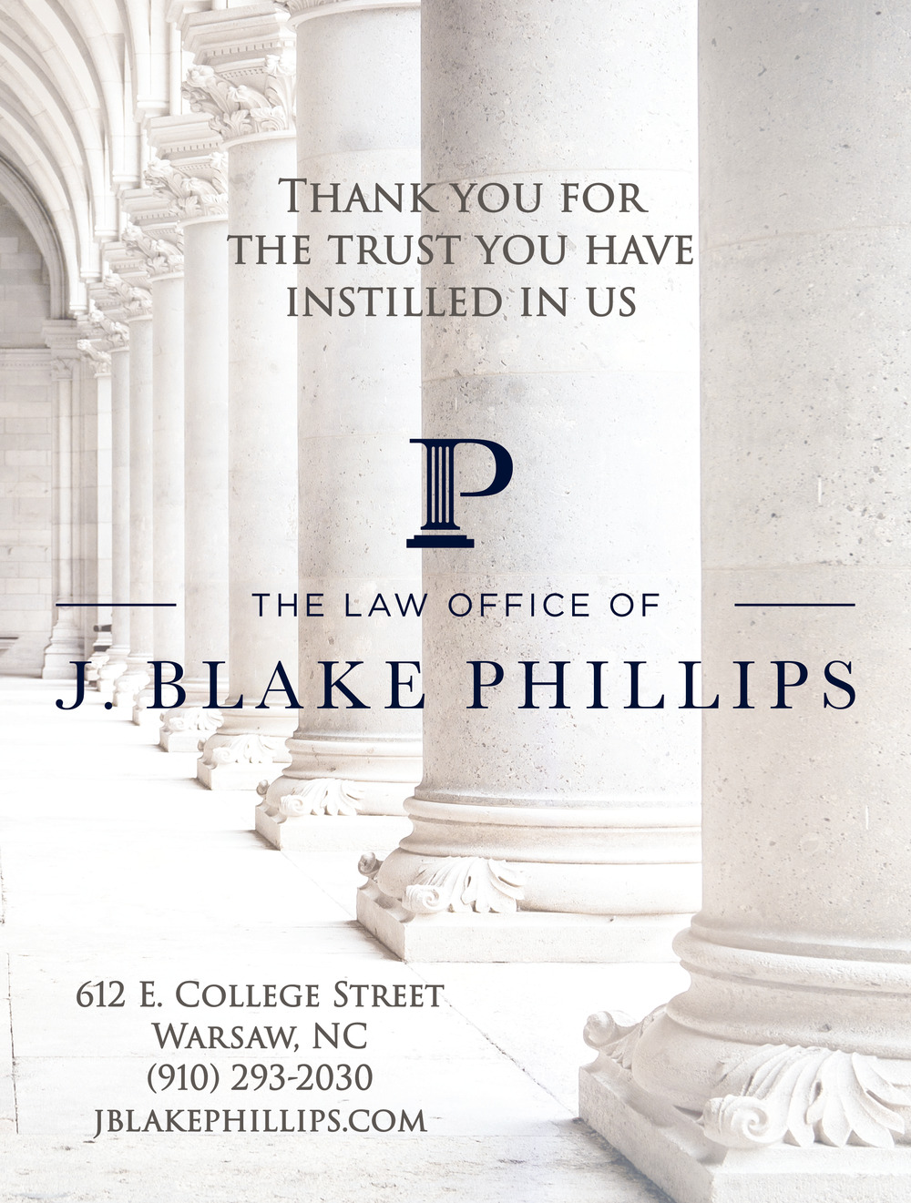 Apr 09, 2026. The Law Office of J. Blake Phillips, PLLC Attorneys at Law Ads from Duplin Times