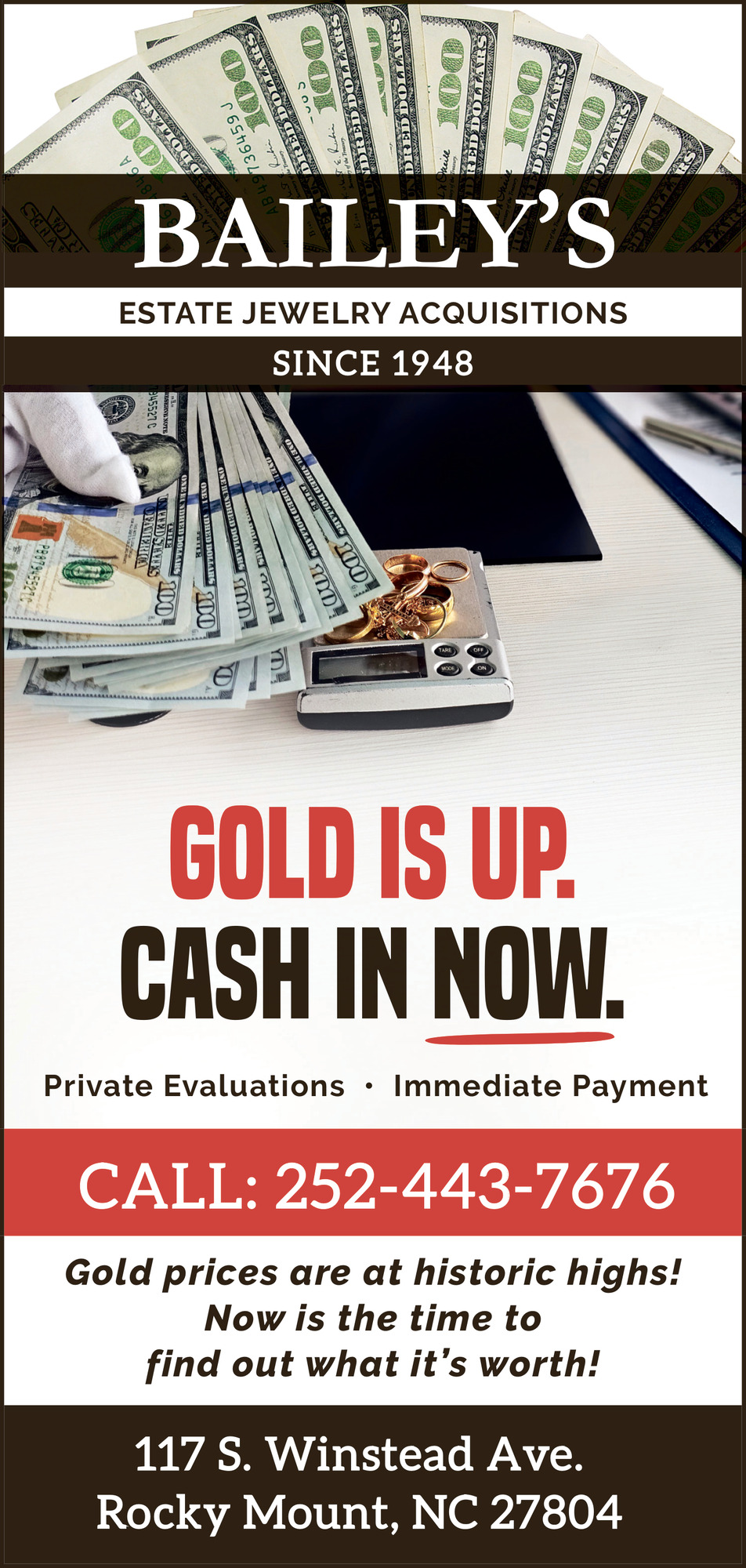 Ads for Bailey's Estate Jewelry Acquisitions in Rocky Mount, NC
