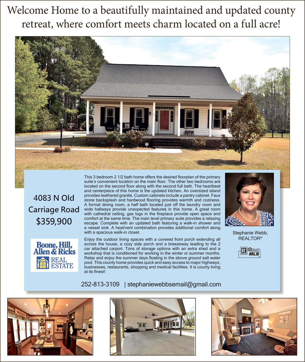 Apr 11, 2026. Boone, Hill, Allen & Ricks Real Estate - Stephanie Webb Real Estate Ads from Rocky Mount Telegram