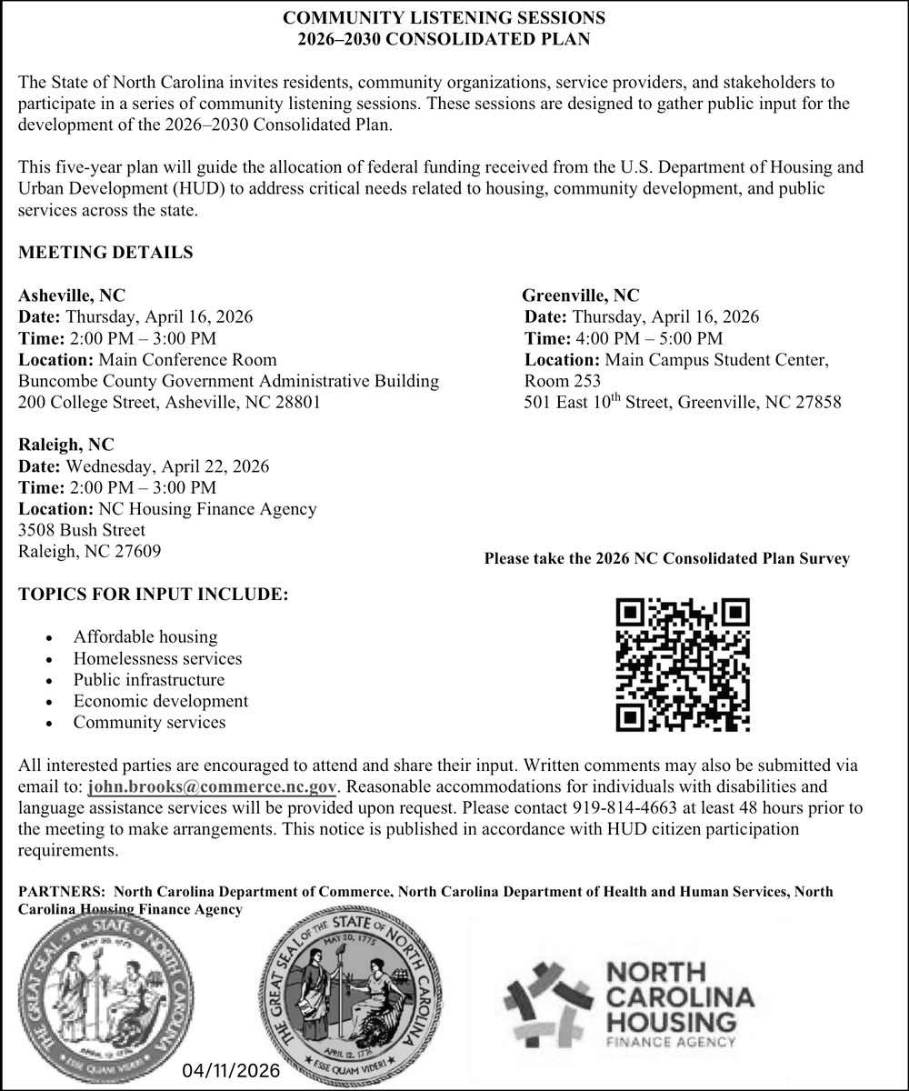 Apr 11, 2026. State of North Carolina Government Ads from The Daily Reflector