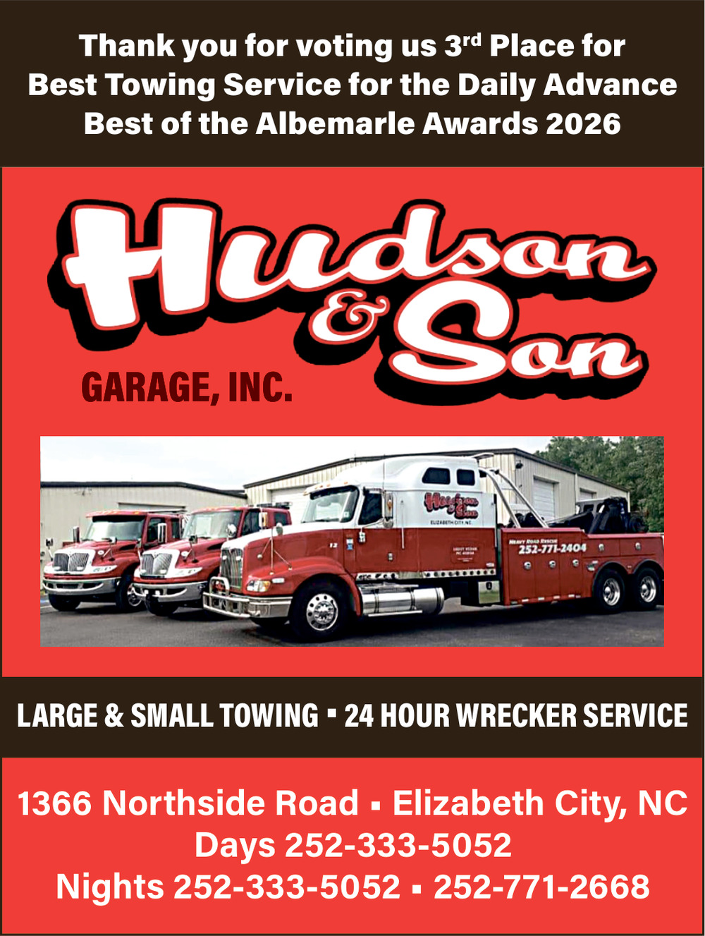 Apr 18, 2026. Hudson & Son Garage, Inc Auto Services Ads from The Daily Advance