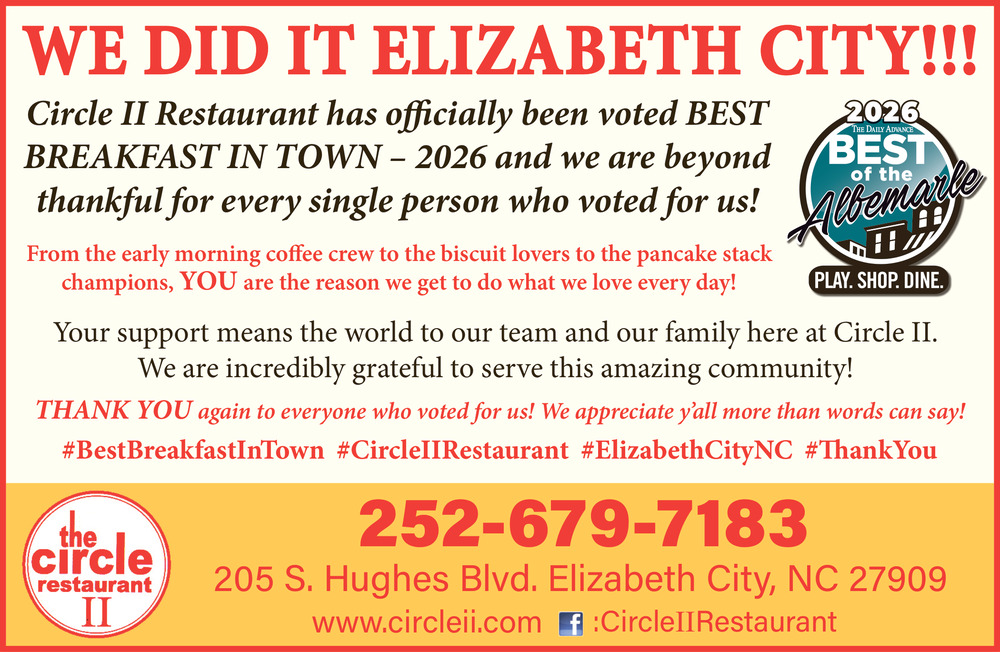 Apr 18, 2026. The Circle Restaurant Restaurant Ads from The Daily Advance
