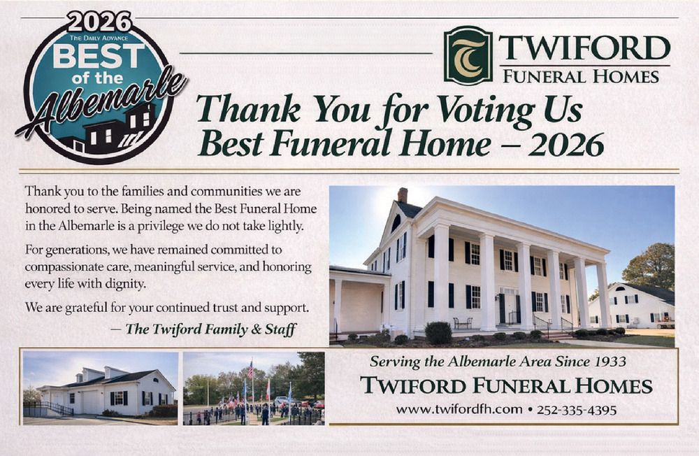 Apr 18, 2026. Twiford Funeral Homes, LLC Funeral Ads from The Daily Advance
