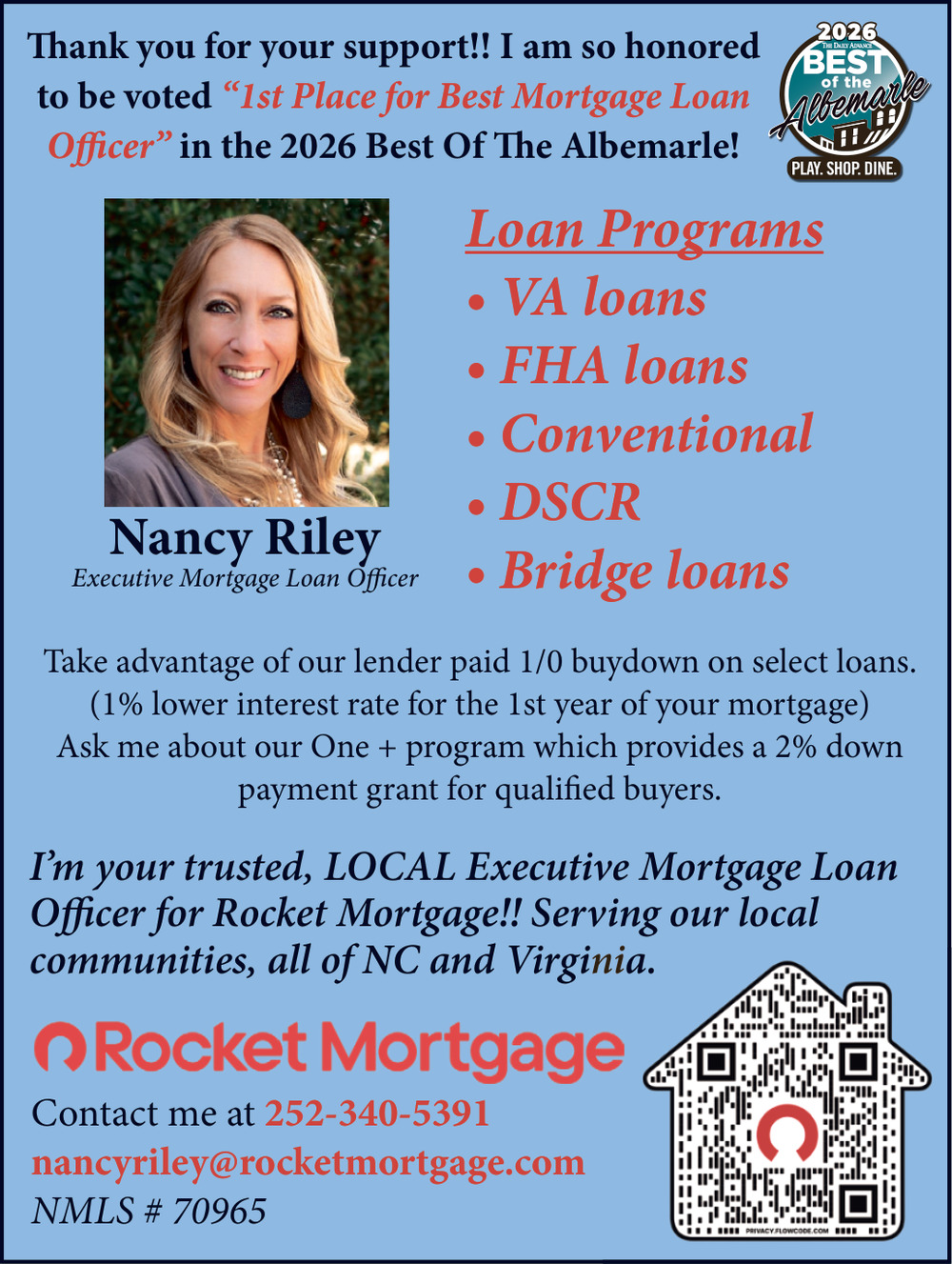 Apr 18, 2026. Rocket Mortgage - Nancy Riley Real Estate Ads from The Daily Advance
