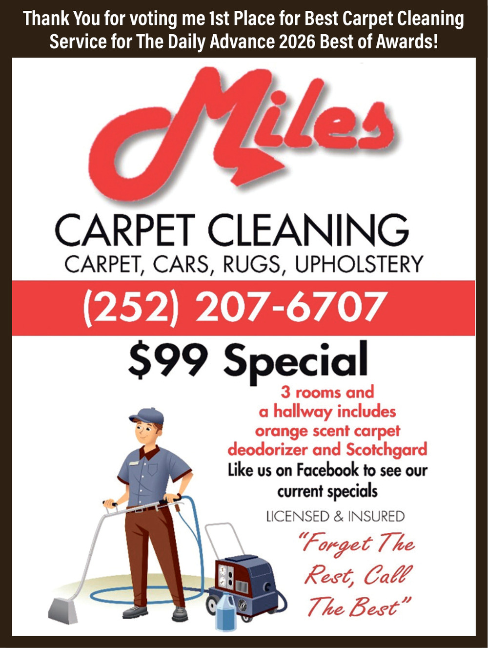 Apr 18, 2026. Miles Carpet Cleaning Cleaning Ads from The Daily Advance