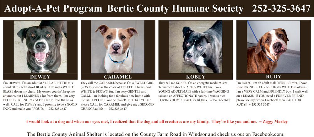 Apr 25, 2026. Bertie County Animal Shelter Pets Ads from Bertie Ledger-Advance