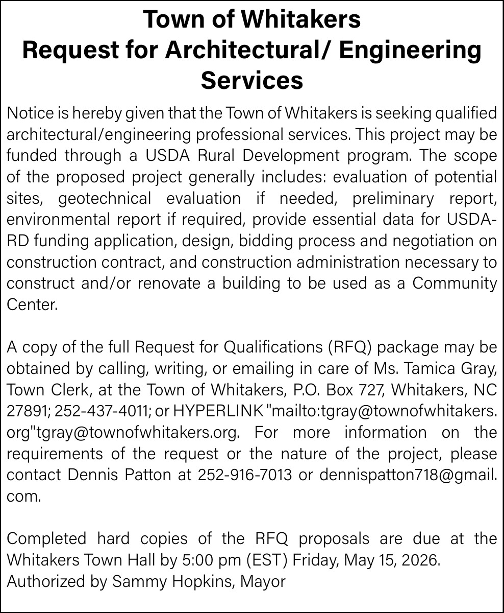 252-258-2497302 NW Railroad StWhitakers, NC 27891(Town of Hall)