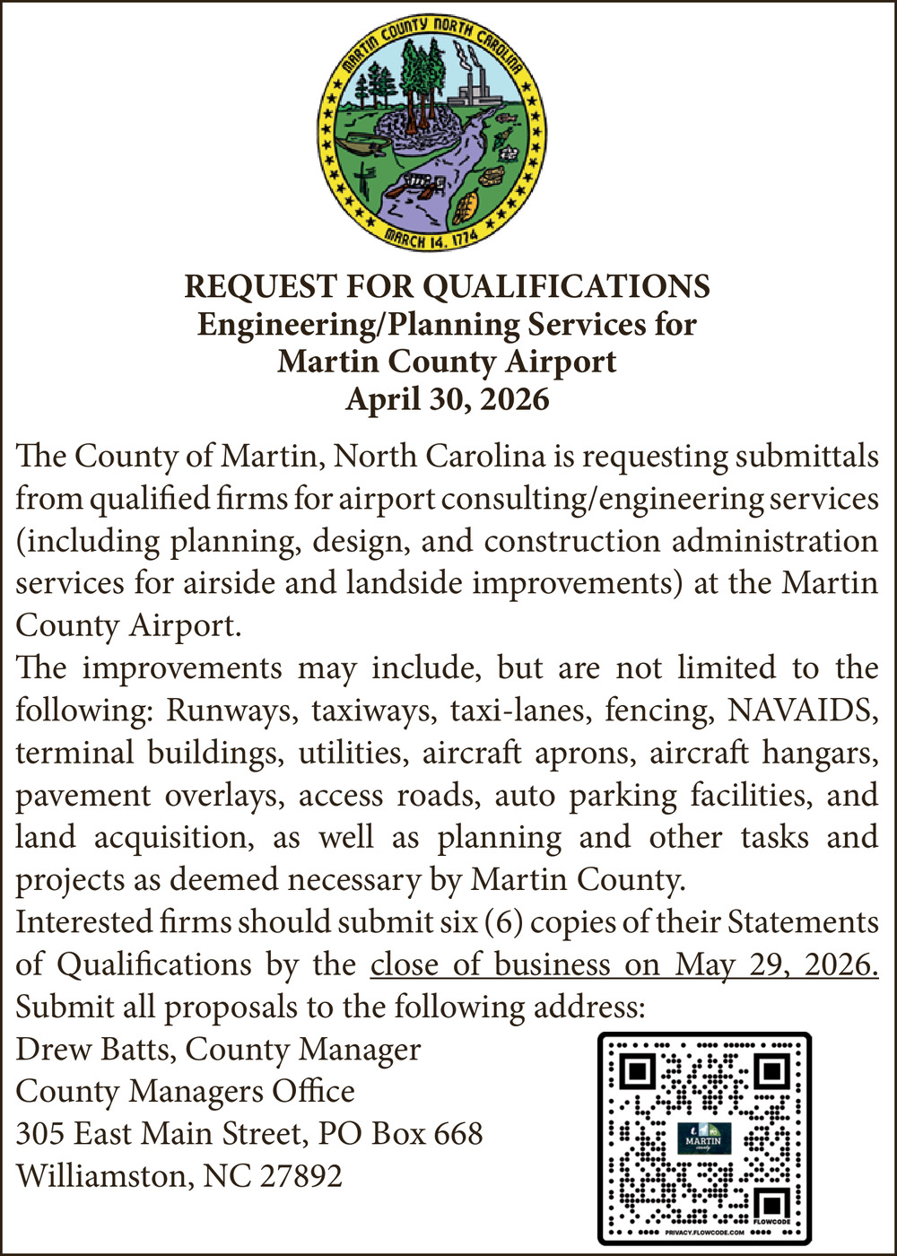 Ads for Martin County Airport in Williamston, NC